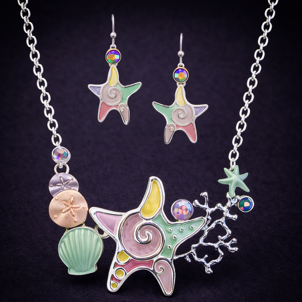 Colorful sealife starfish necklace & earrings